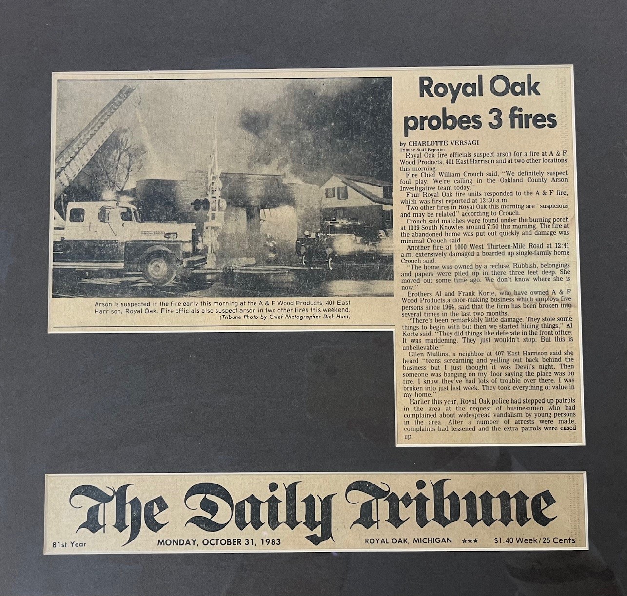 Al and Frank’s bet paid off and the business began to grow. Together with a few employees, the brothers worked hard, prioritizing craftsmanship and value. The resulting success required more space, so the business expanded to a new building in Royal Oak. Unfortunately, the good times wouldn’t last forever. Disaster struck in 1983 when a fire completely destroyed the business.